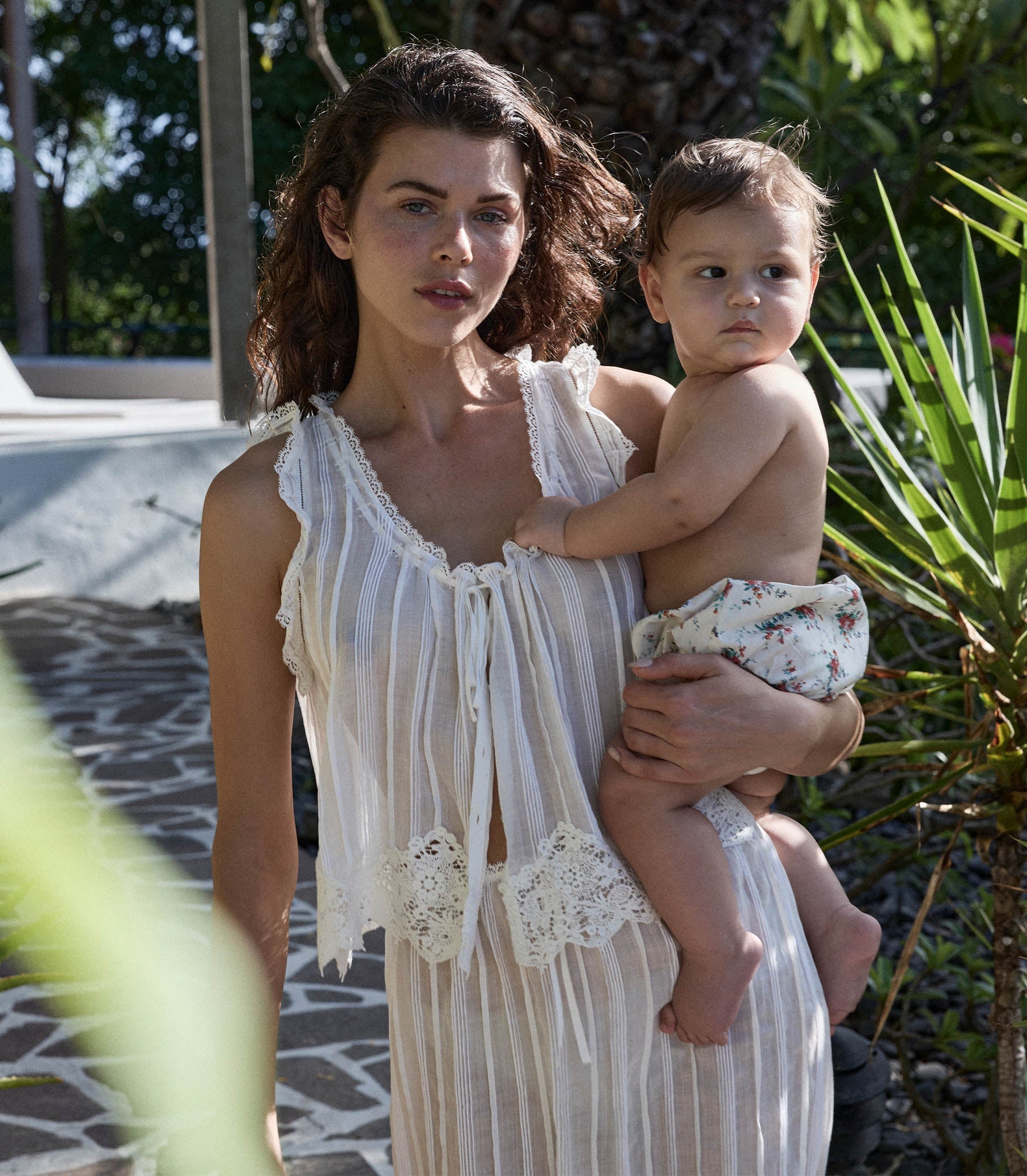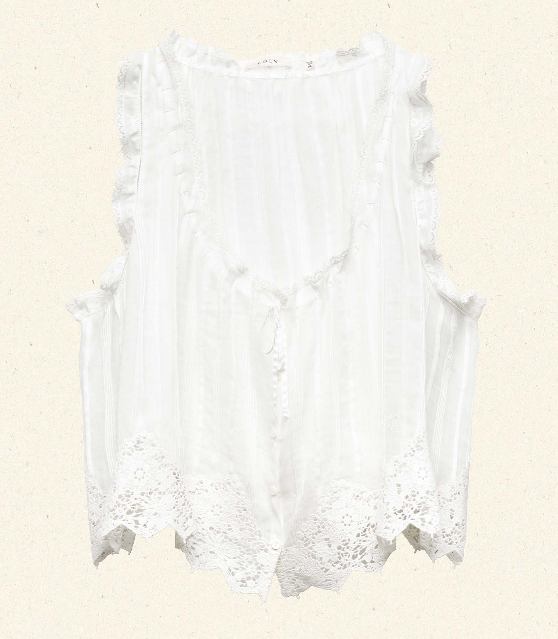 Crafted from a lightweight ramie, the Amal draws inspiration from our beloved Traveler Top, featuring a slightly cropped silhouette, mother-of-pearl buttons, and a scoop neckline with a fixed grosgrain ribbon tie. Intricate Victorian-inspired floral lace and ladder trims adorn the sleeve openings and hemline.
