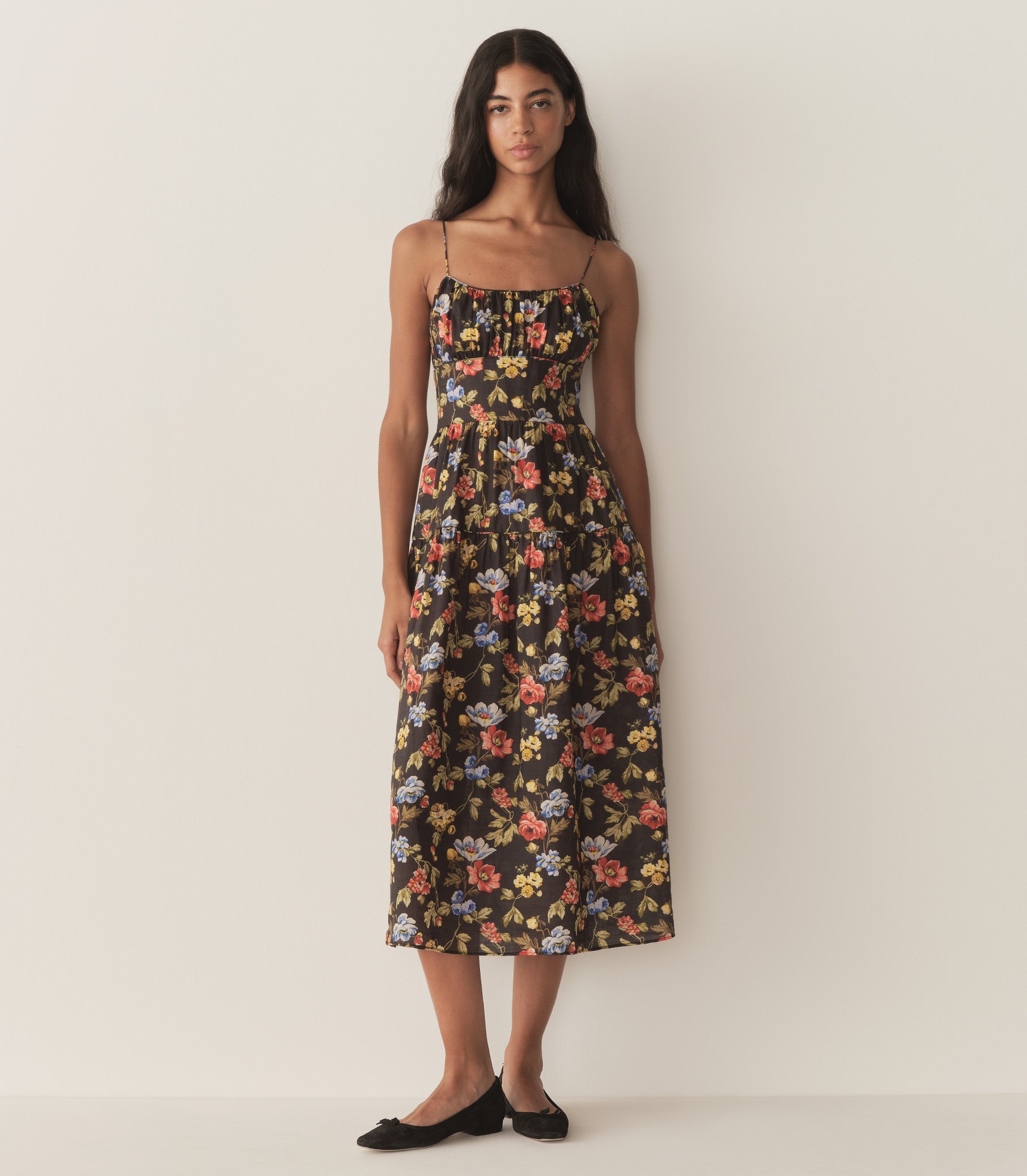 Reimagined in a lightweight ramie graced with a 1930s French block print, our beloved Benoit Dress returns for Spring, featuring a soft sweetheart neckline and ultra-skinny spaghetti straps. A fitted bodice with an invisible side zipper gives way to an ankle-grazing A-line skirt.