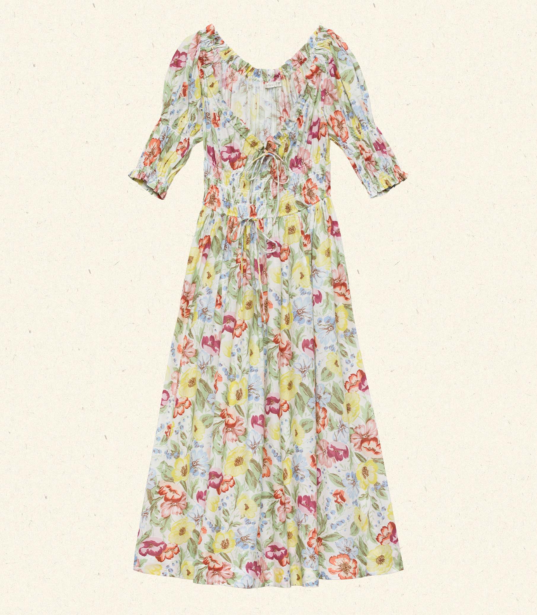 In the softest organic cotton voile, our beloved Ischia Dress—a Favorite Character that first made its debut in Spring 2021—is refreshed in our colorful Anemone Bloom, featuring double-puffed sleeves and a scoop neckline adorned with petite ruffles and a functional center tie. A smocked bodice with an adjustable waist tie gives way to an ankle-grazing A-line skirt.