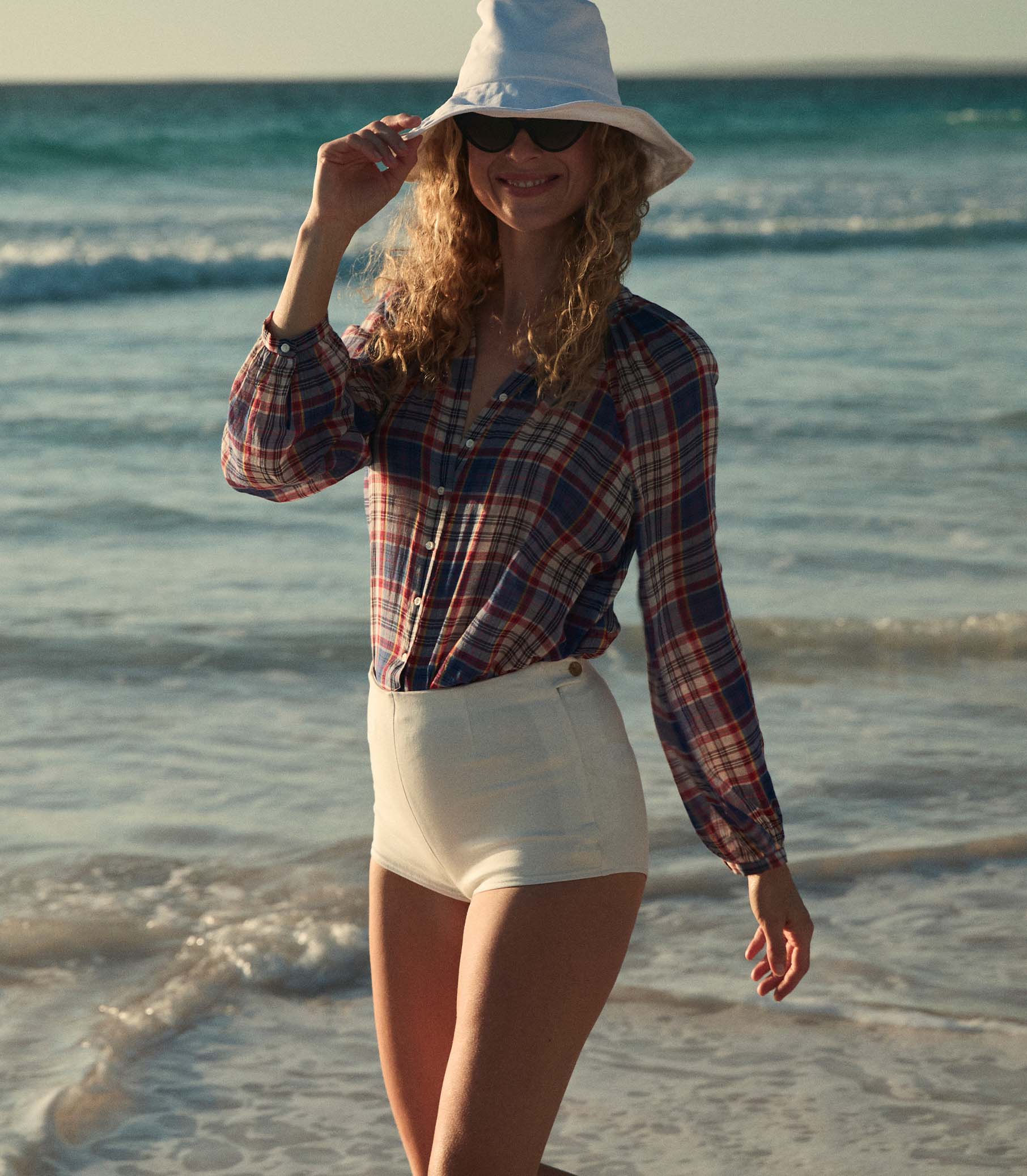 A micro-short rendition of our beloved Lula Pant, the Lula Short is inspired by styles worn by our favorite 1960s starlets. Crafted from a stretchy cotton blend, it features a high-rise waist, an invisible side zipper, and a single faux horn button closure.