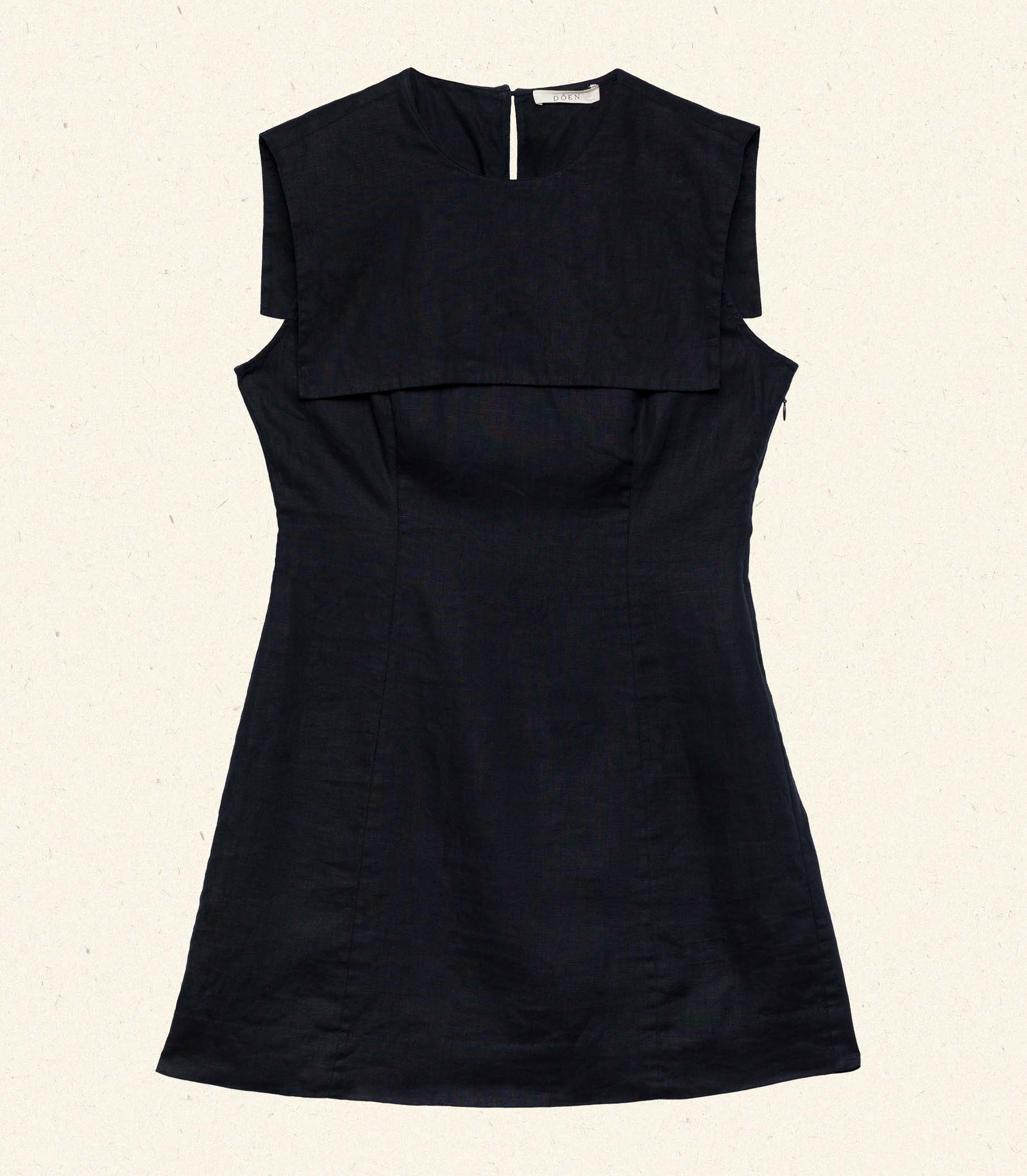 Tailored in a soft midweight linen, the Monroe Dress is a ‘60s-inspired mini-length shift dress. It features a body-skimming shift silhouette with an invisible side zipper and a wide square sailor-style collar. A single self-covered button with a keyhole detail fastens at the back of the neck.