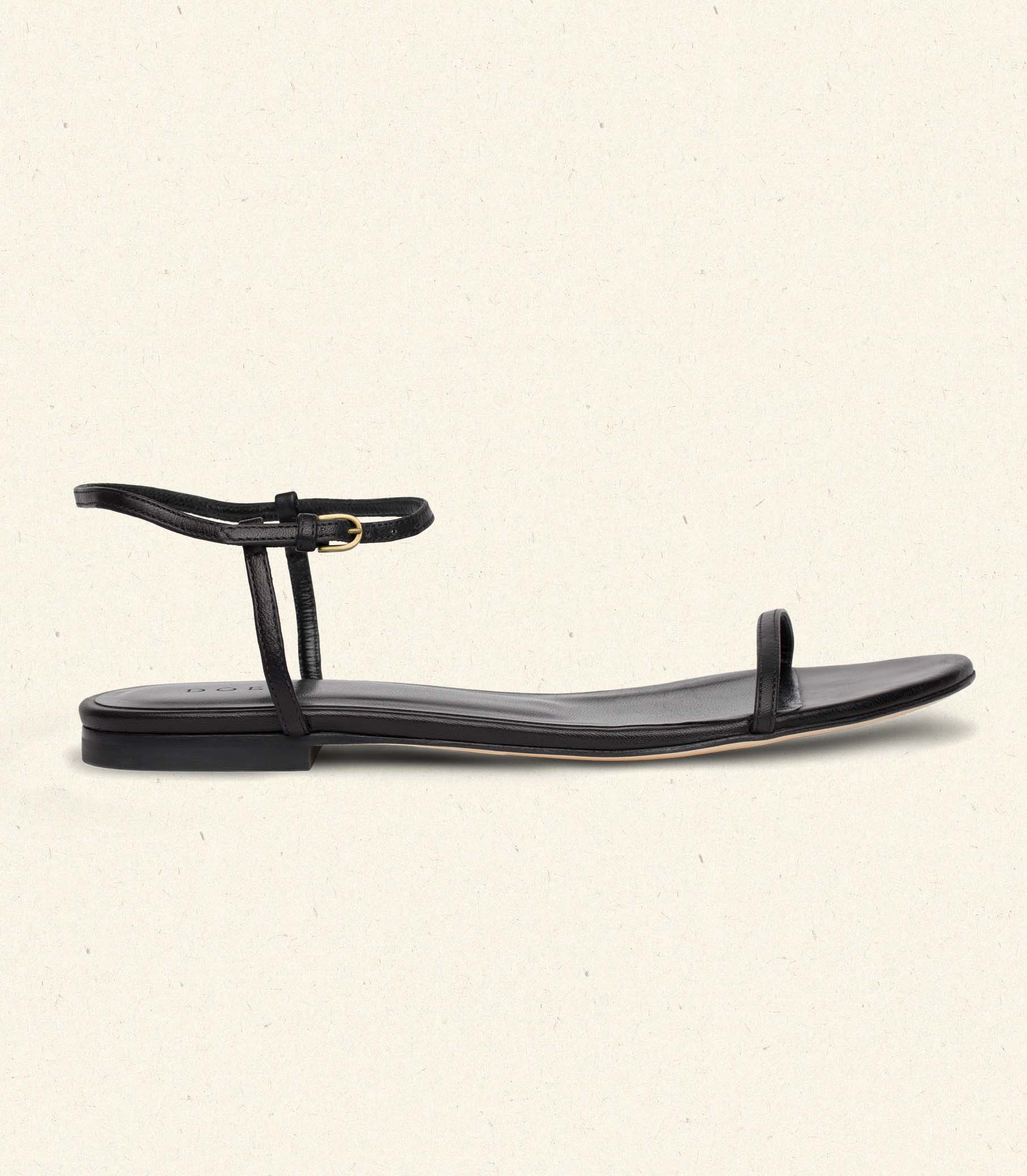 Handcrafted in Italy from Nappa leather, the ‘60s-inspired Sartene is a barely-there flat sandal that’s easily dressed up or down. It features a whisper-thin strap across the toes and a second slim strap that fastens with a petite buckle at the ankle.