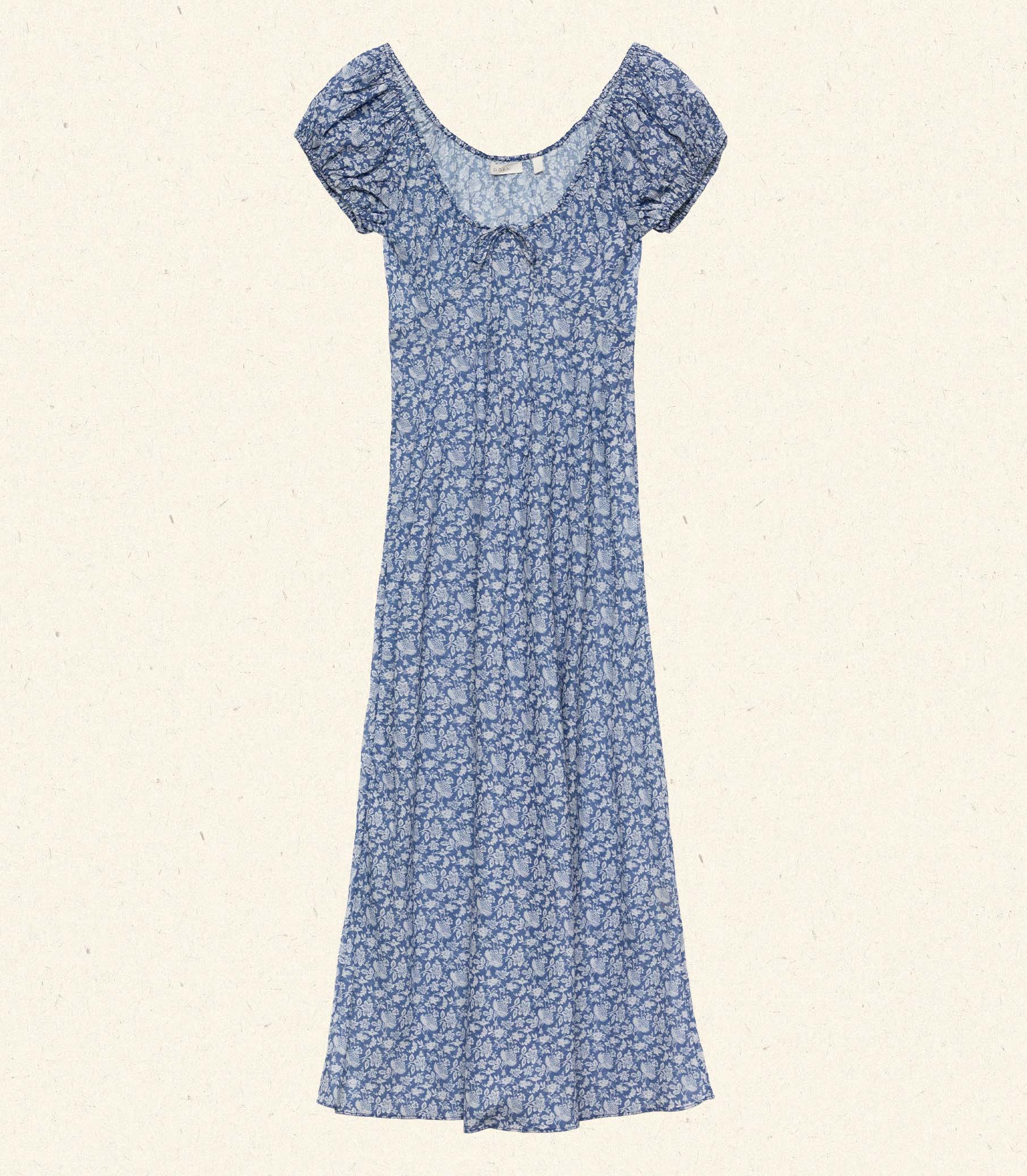 Crafted from a soft, lightweight organic cotton voile, the Sofia Dress returns for Spring, now graced with our beloved Tea Floral—a print we first introduced in 2018, inspired by vintage English chintzes. It features short puffed sleeves, a shovel-shaped neckline with a decorative tie, and a fitted bodice that gives way to an ankle-grazing bias-cut skirt.