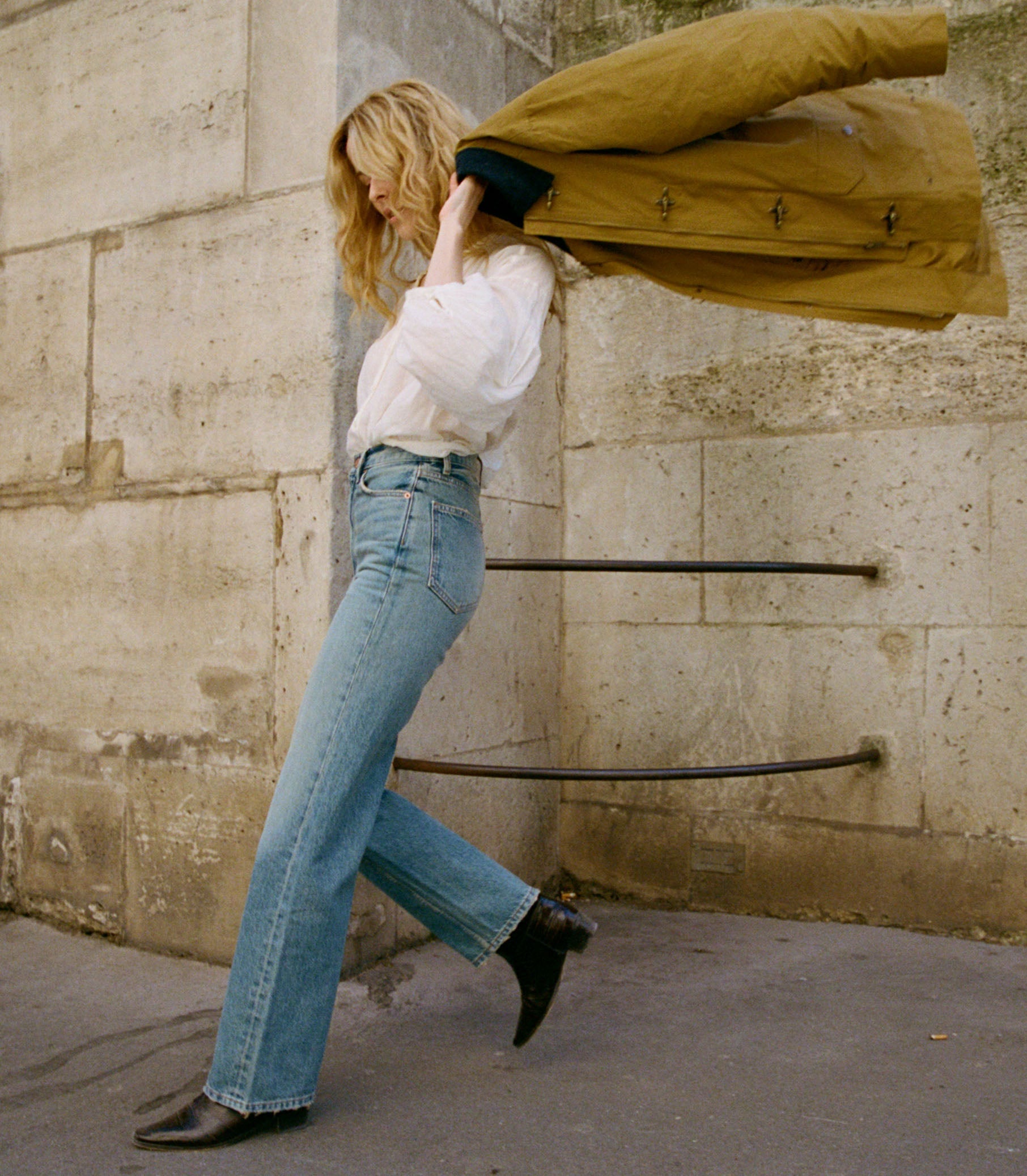 For Spring, we’re excited to introduce the Waverley Raincoat, a sturdy layer with a slightly slouchy fit. Crafted from a water-repellant, waxed cotton-nylon blend and fully lined with viscose twill, it’s detailed with a navy corduroy collar. Four antique-inspired brass clasps and a hidden zipper fasten at the front. For added utility, there are two front patch pockets and three interior pockets, plus brass snap buttons at the front pockets and cuffs.